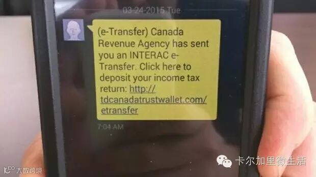 加拿大税务局(CRA)提醒民众,近日一种短信诈骗的形式出现,诈骗者假冒税务局的名义通知收信人有Interac电邮转账(e-Interac)等待接收,并在短信内附上了链接。
