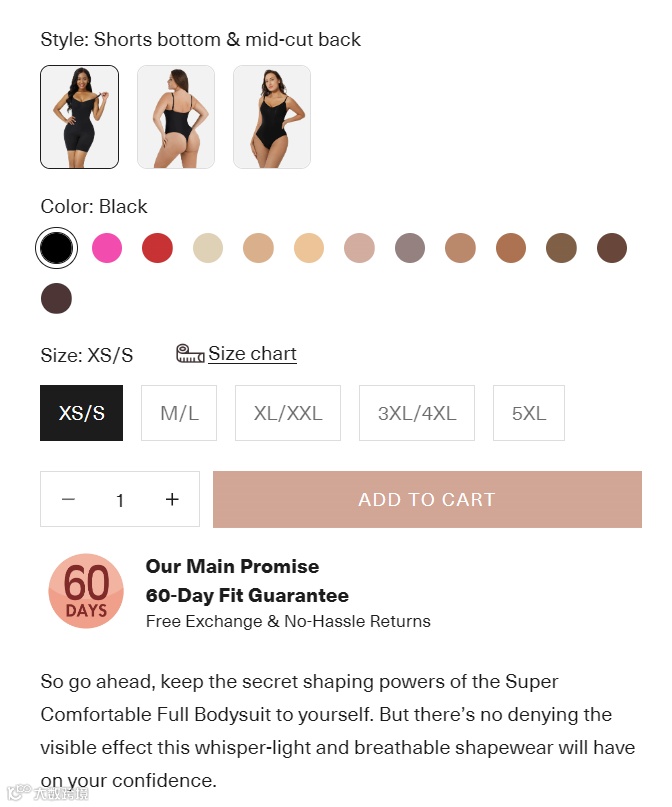 在产品设计上,FeelinGirl提供从XS到5X一共9种尺码,覆盖非常全面,让不同身材的消费者都能找到适合的产品。“全尺码”这个卖点并不是FeelinGir的独创,同样来自厦门的品牌Shapellx主打的强大的包容性,产品定位为大码类塑身衣,尺码从S覆盖到6X。