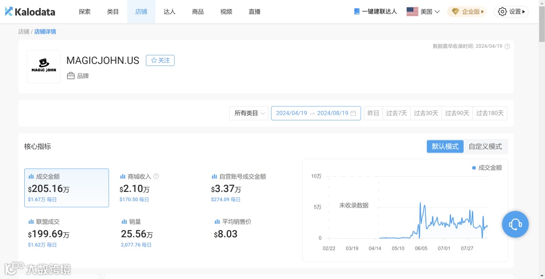 TikTok Magic John品牌通过社交媒体营销成功提升了其手机配件产品的销量,尤其是其手机钢化膜在TikTok上的爆红带动了整个店铺业绩的显著增长。根据Kalodata数据,该品牌MAGICJOHN.US小店从4月中旬开店以来,总销量和销售额分别达到25.56万和205.16万美元。成功的原因主要有两个:一是产品质量高,硬度、清晰度和安装便利性都得到消费者认可;二是社交媒体营销策略到位,通过在TikTok发布产品介绍视频和与达人合作,利用极端测试视频吸引消费者,有效提升了品牌知名度和销量。