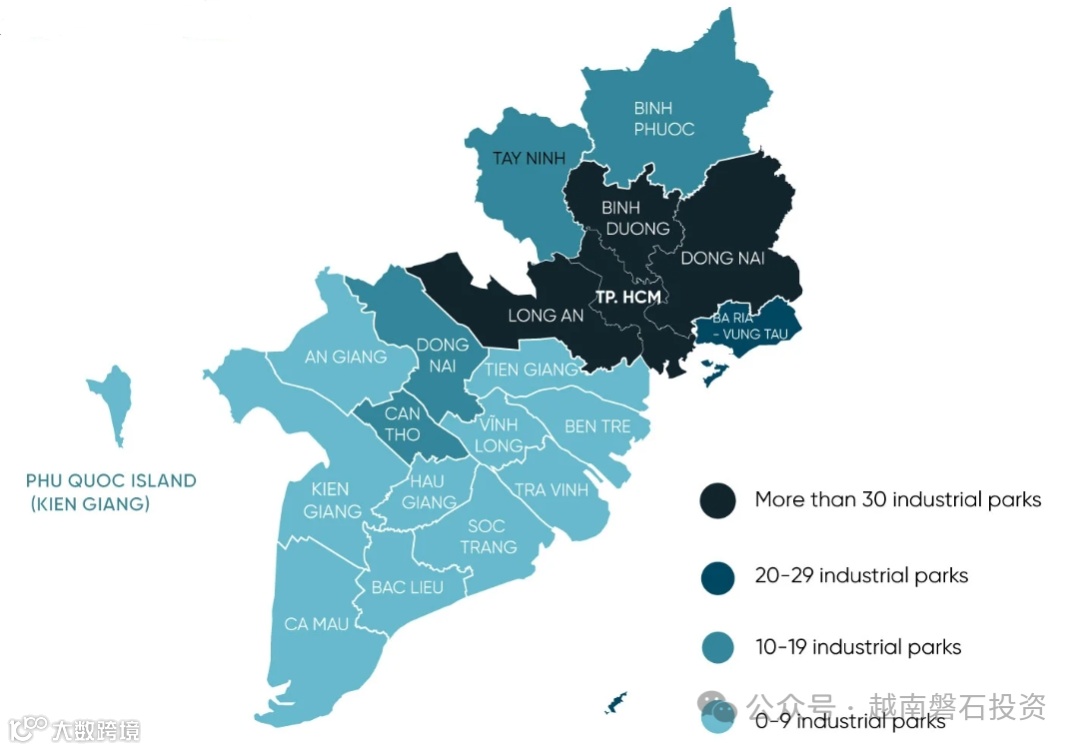 平阳省以拥有越南最大面积的工业园区而著称,总面积达12,721公顷,分布于31个工业园区之中。与此同时,同奈省则以其众多的工业园区数量和约84%的高入驻率而闻名。