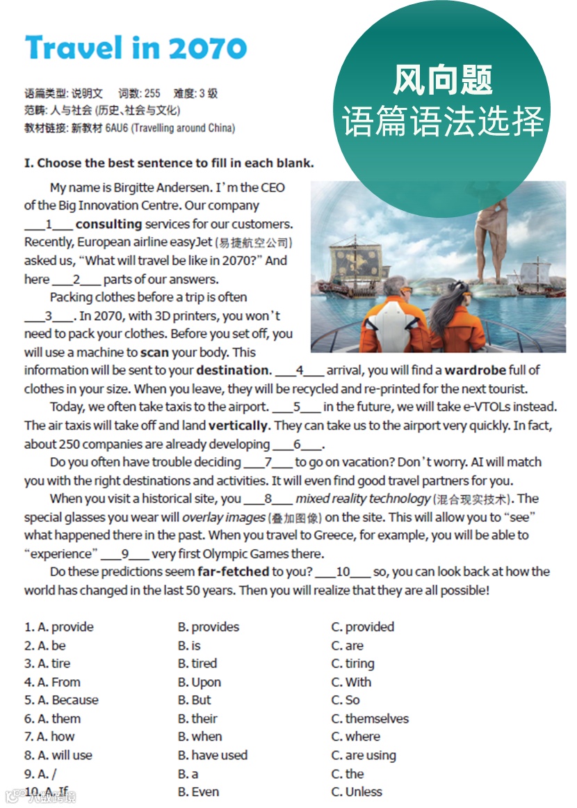 在理解力的考察上,对接A篇阅读的新题型风向,即和高考题型的六选四题型接近,选合适的句子到文章中。