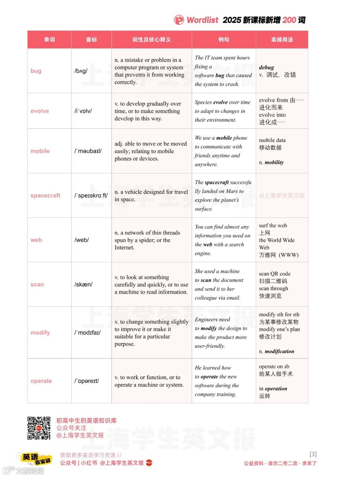 如果你是初中生,学有余力的话,尽早去记忆和掌握这个新词表。