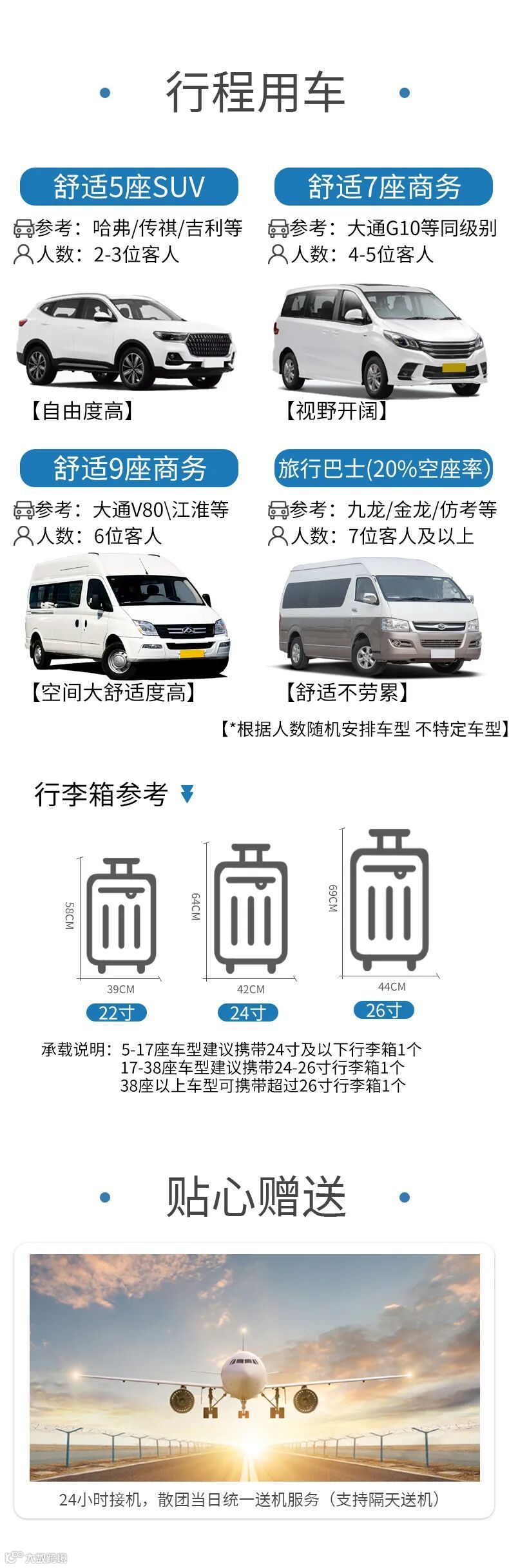 tips:用车仅以客人人数为标准,不包含司机、领队。