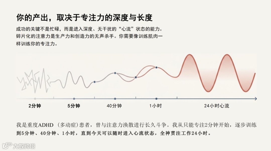 多数人智力水平相近,失败主因在于浅尝辄止。以“半仙”为例,用4年实现公司年收入达100万美元,再用4年增长至1000万美元,印证了增长的非线性特征——长期积累才能迎来爆发。