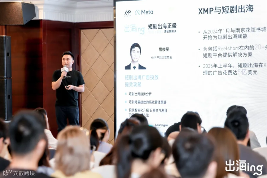 8 月 28 日,XMP 联合 Meta 举办短剧出海主题活动,吸引广西山海星辰、麦芽传媒、南京网眼、上海元聚、九州文化等 200 余位行业从业者参与。活动现场,XMP 产品团队分享了基于实战经验的增长策略与优化建议,切实帮助出海企业打通营销链路,实现稳健增长。