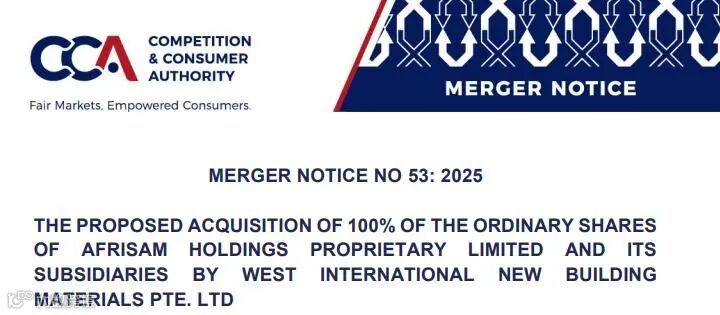 12月25日消息,博茨瓦纳竞争与消费者管理局网站日前发布公告称,West International New Building Materials公司拟收购南非水泥集团AfriSam及其子公司100%普通股,该机构已收到相关合并申报。公告未披露财务细节。