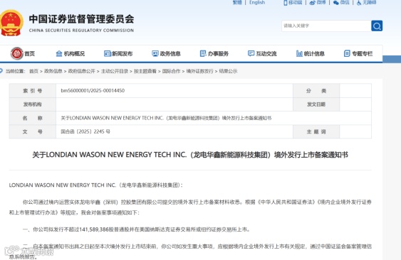 2025 年 12 月 12 日,中国证监会的一则境外发行上市备案通知书,为沉寂已久的中概股市场注入了强心剂。龙电华鑫新能源科技集团成功拿下 2025 年 4 月以来首张美股上市备案,拟登陆纳斯达克或纽交所,计划发行不超过 1.4159 亿股普通股,按最低 4 美元 / 股的发行价计算,募资规模高达 5.6 亿美元。这一突破性进展,不仅标志着中概股境外上市通道的持续畅通,更以行业标杆的姿态,展现了中国资本市场对外开放的坚定决心。