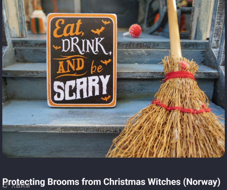 挪威人相信,平安夜巫婆和恶灵会出来偷扫帚骑!所以全家要在睡前把扫帚全藏好。听起来像童话,但人家是认真的!