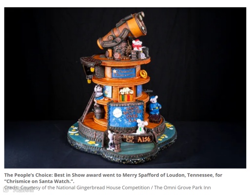 但美国人最“卷”的还是姜饼屋(gingerbread house)了,那个从前只有小朋友才玩的姜饼屋,在美国已经进化成正经八百的全国性比赛了!《Food & Wine》杂志报道全美姜饼屋大赛时写道: