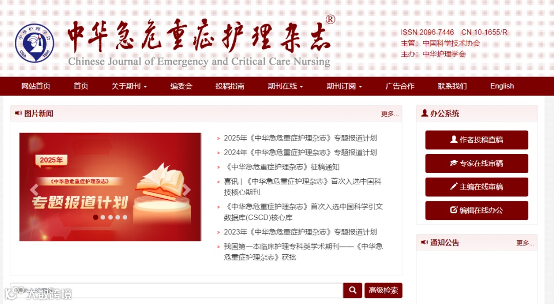 简介:创刊于2020年1月10日,是我国第一本临床护理专科类学术期刊。由中华护理学会主办,国内外公开发行,主要报道急危重症护理专科领域领先的科研成果和临床经验,以及对护理临床有指导作用的护理理论研究。本刊的办刊宗旨是:贯彻党和国家的卫生工作方针政策,主要反映国内外急诊及危重症护理研究的新进展、新动向、新成果,促进国内外急危重症护理学术交流。