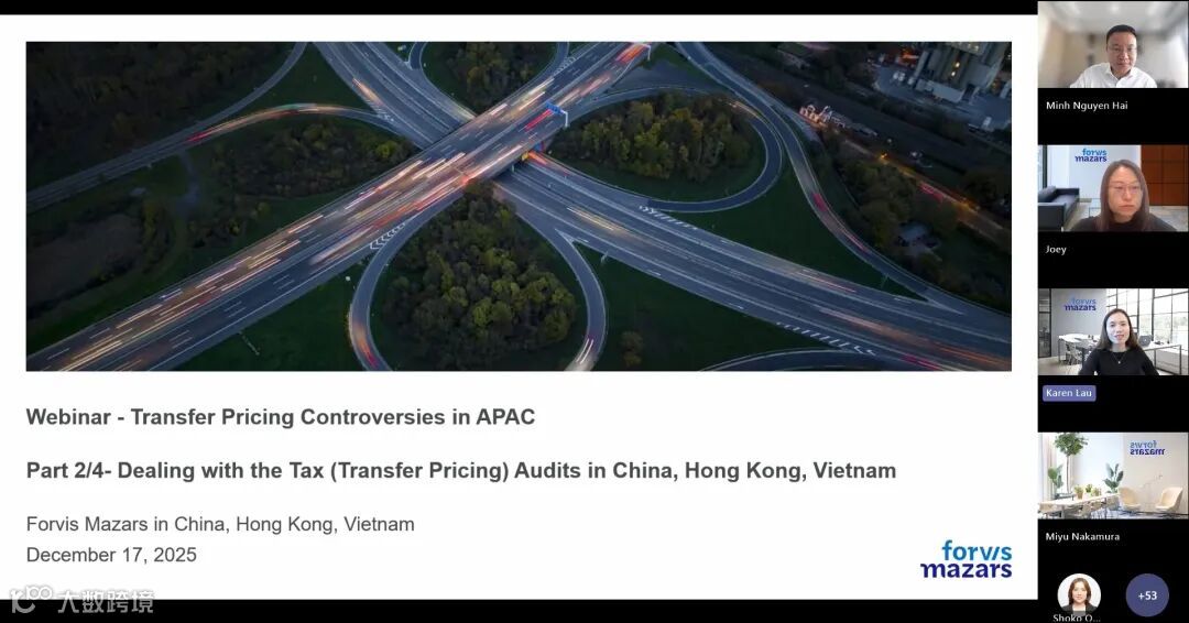 On 17th December, Joey Zhou, Tax Partner of Forvis Mazars in China, Karen Lau, Tax Partner of Forvis Mazars in Hong Kong (China) and Minh Nguyen, Advisory Partner of Forvis Mazars in Vietnam held the webinar Transfer Pricing Audits in APAC – Session 2: Chinese Mainland, Hong Kong SAR, Vietnam.