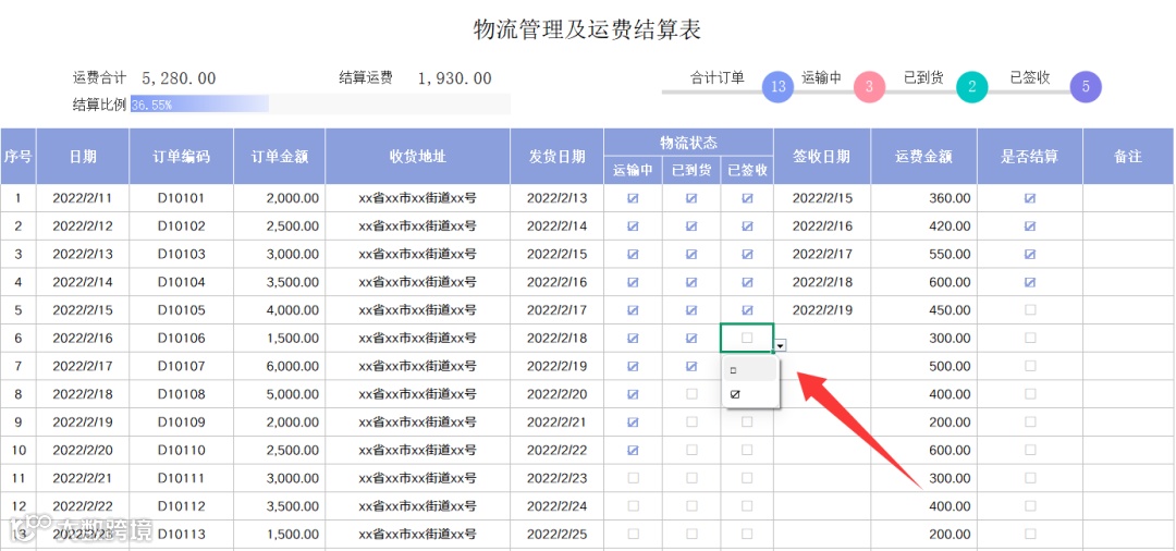 物流管理及运费结算表