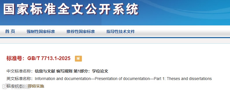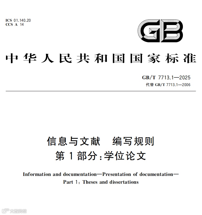 2025年8月1日,国家市场监督管理总局、国家标准化管理委员会发布GB/T 7713.1-2025《信息与文献 编写规则 第1部分:学位论文》,将于2026年2月1日起实施,全面替代2006年版标准。小编对新版标准的重点技术变化进行了整理,并根据自身理解和多年论文工作经验提出了一些应对建议,供高校师生参考。