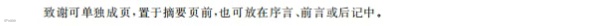 2025版:致谢可单独成页,置于摘要页前,也可放在序言、前言或后记中。