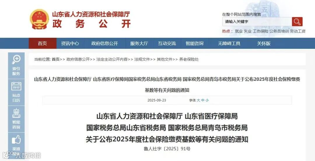 【最新发布】2025年度山东最新社保缴费基数上下限
