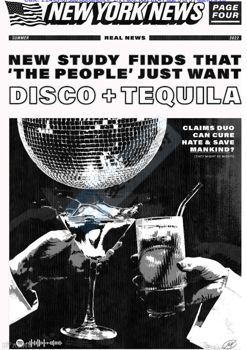 原告 Megan Steiger 是一位来自美国的平面设计师和艺术家。Megan Steiger拥有丰富的创造力和精湛的技艺,尤其在艺术版画的创作上表现卓越,能以独特的风格和手法展现出深刻的艺术内涵。此次维权的作品最初是为了装饰酒吧推车区域而设计的,原告Megan Steiger受报纸标题的启发,结合有趣黑白纽约新闻设计,让这幅画恰到好处的体现复古音乐美学。