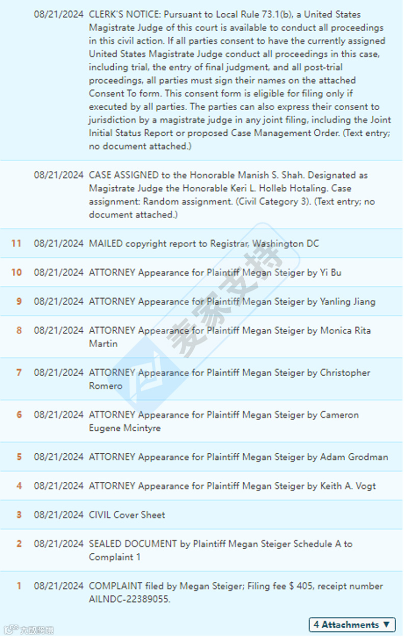 Megan Steiger 此次用于维权的作品创作于 2022 年,并在 2023 年完成注册。截至本月 22 日,本案当前尚未提出 TRO 禁令。在此,麦家温馨提示广大卖家尽快进行自我检查,以防止陷入 TRO 侵权风险之中。