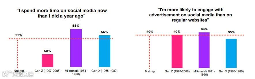 在对待社交媒体的态度方面,55%的沙特人表示,他们现在花在社交媒体上的时间比一年前多;40%的沙特人认为,与普通网站相比,他们更接受社交媒体上的广告。