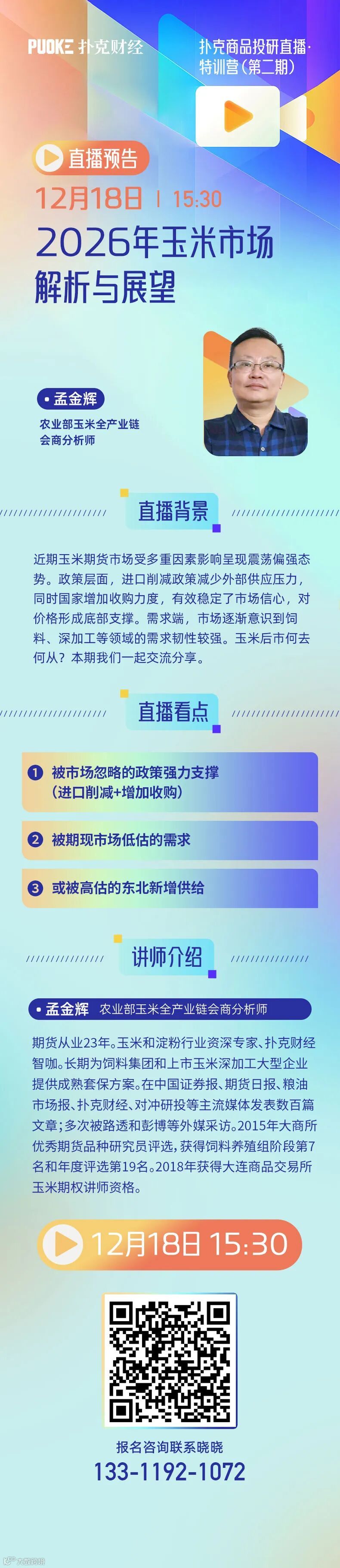 近期玉米期货市场受多重因素影响呈现震荡偏强态势。政策层面,进口削减政策减少外部供应压力,同时国家增加收购力度,有效稳定了市场信心,对价格形成底部支撑。需求端,市场逐渐意识到饲料、深加工等领域的需求韧性较强。玉米后市何去何从?本期我们一起交流分享。