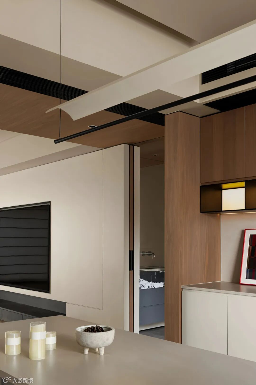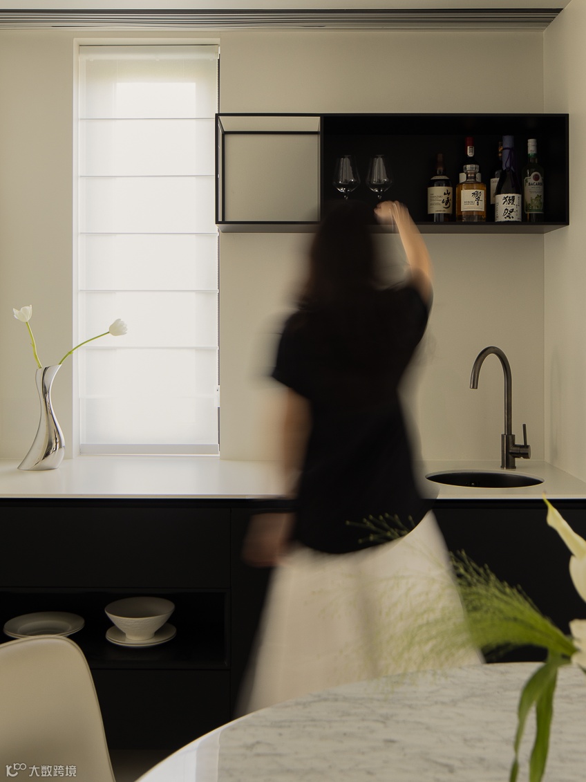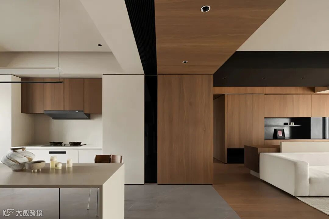 基于对业主生活习惯和场景化结构的理性描摹,重新梳理餐厨互相兼容的紧密关系,为生活构建新的秩序美学,
