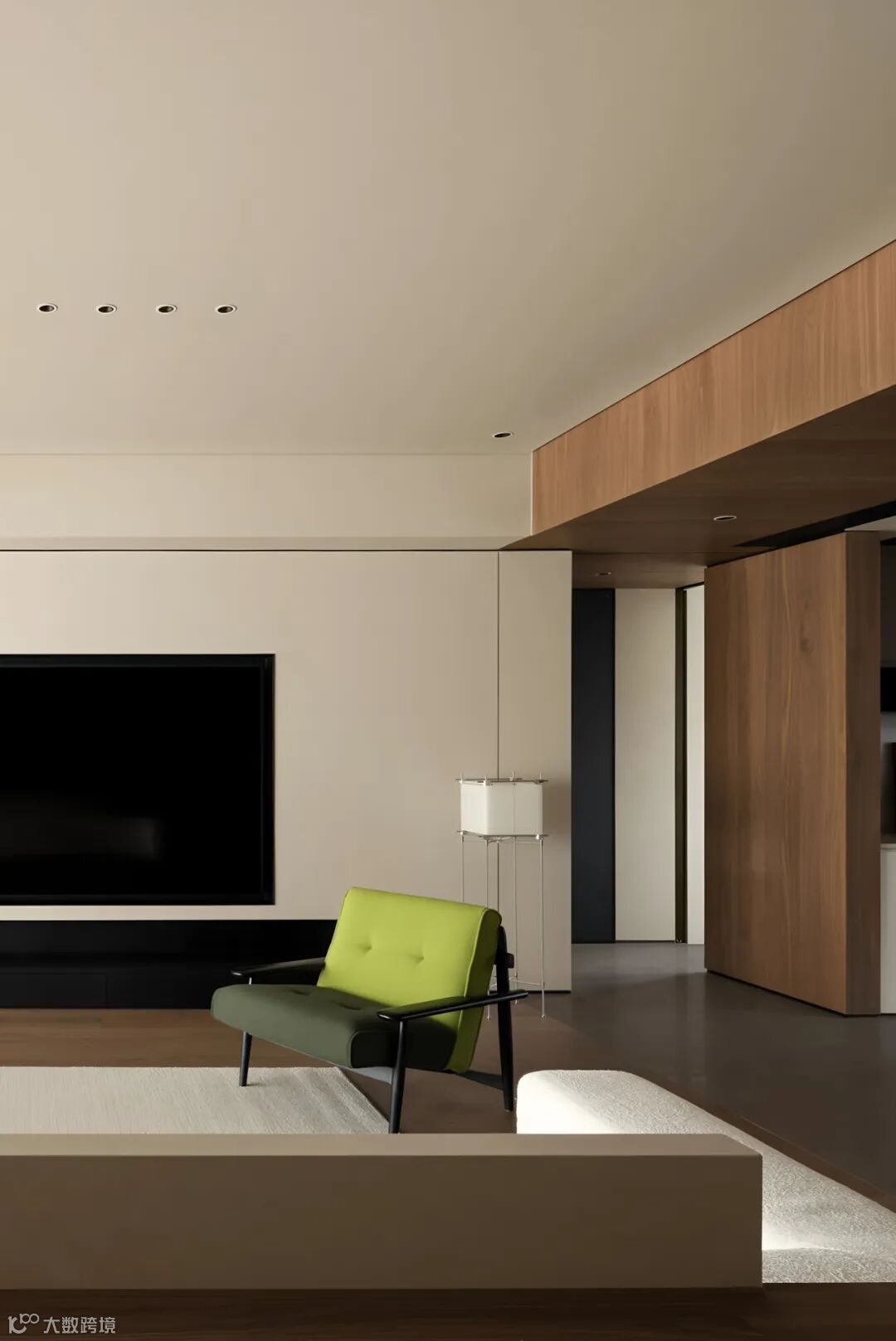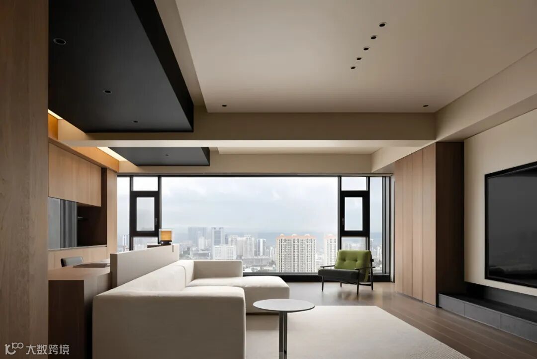 本案为业主婚房,设计重新设定生活格局,以上下界面理动静区域,转承更舒适的生活与社交节奏。全屋铺陈一场现代感的块面关系,克制且流畅的框架内化简约本质,客厅绿色地毯打破常规素色,与室外景观呼应,构建一隅呼吸之地。