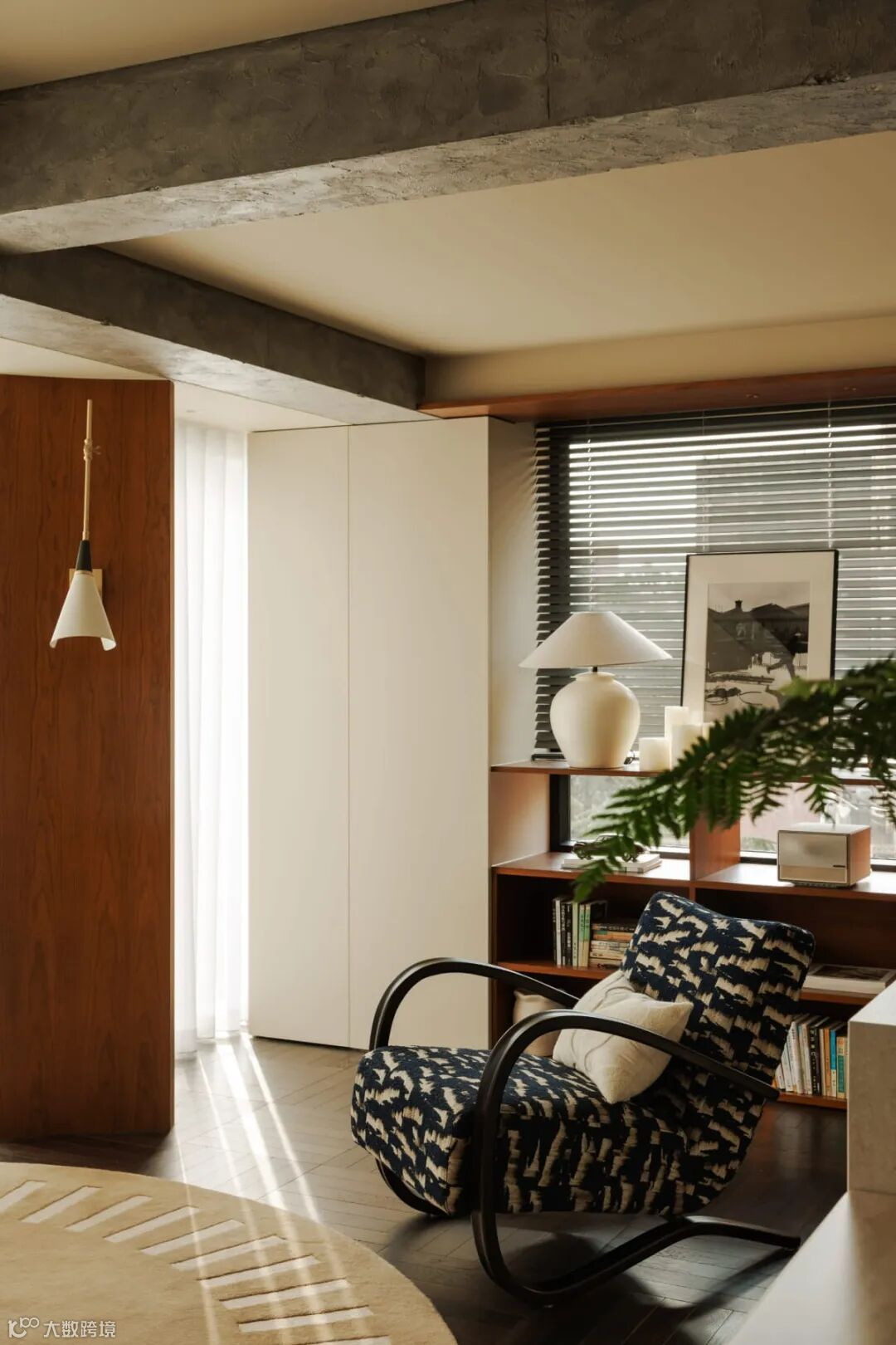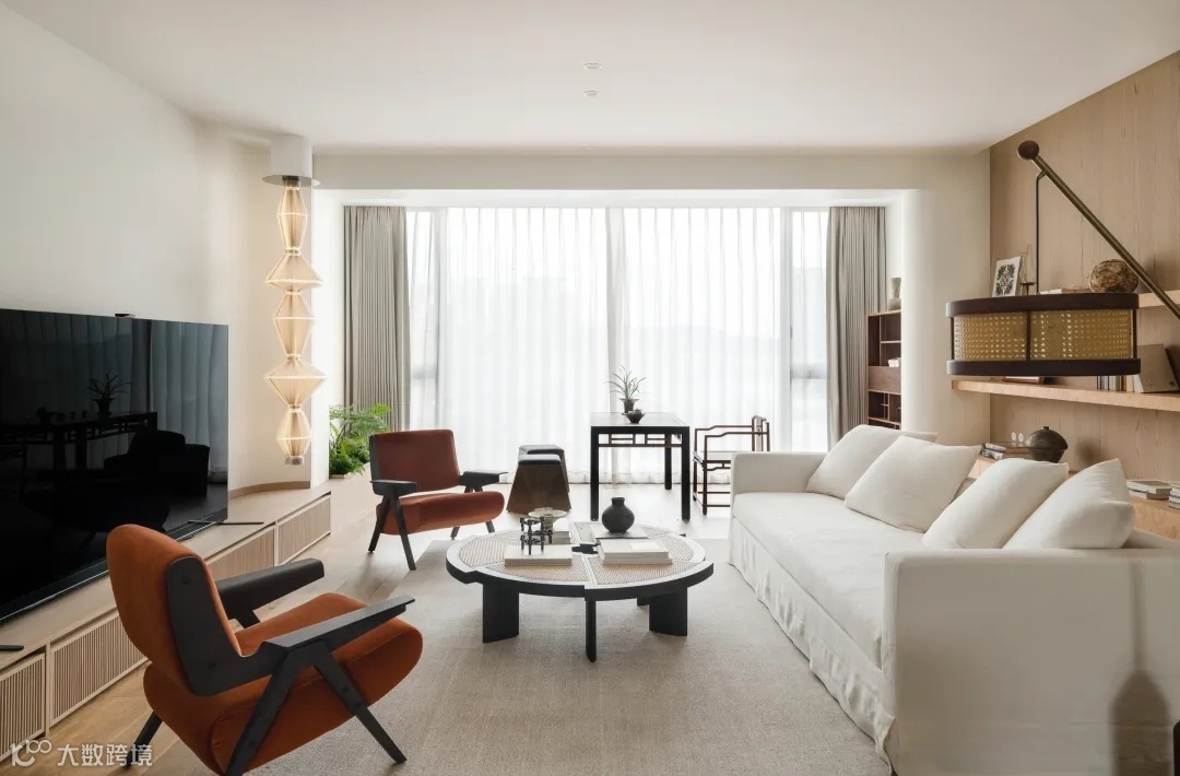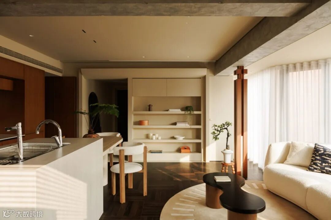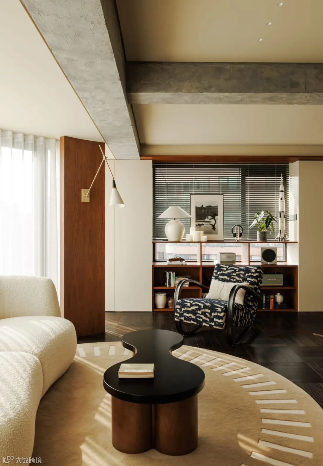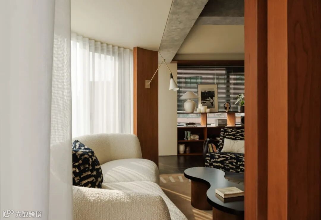 设计以空间全局为出发点,将每一寸空间转化为生活的艺术舞台。采光极佳的圆弧窗,作为客厅的焦点之一,宛如一幅动态的画作。沙发背靠这扇窗,自然与光影在这里交织,每一次光线的变化,都是一场无声的戏剧,让生活的节奏随着光影的流转而变化。