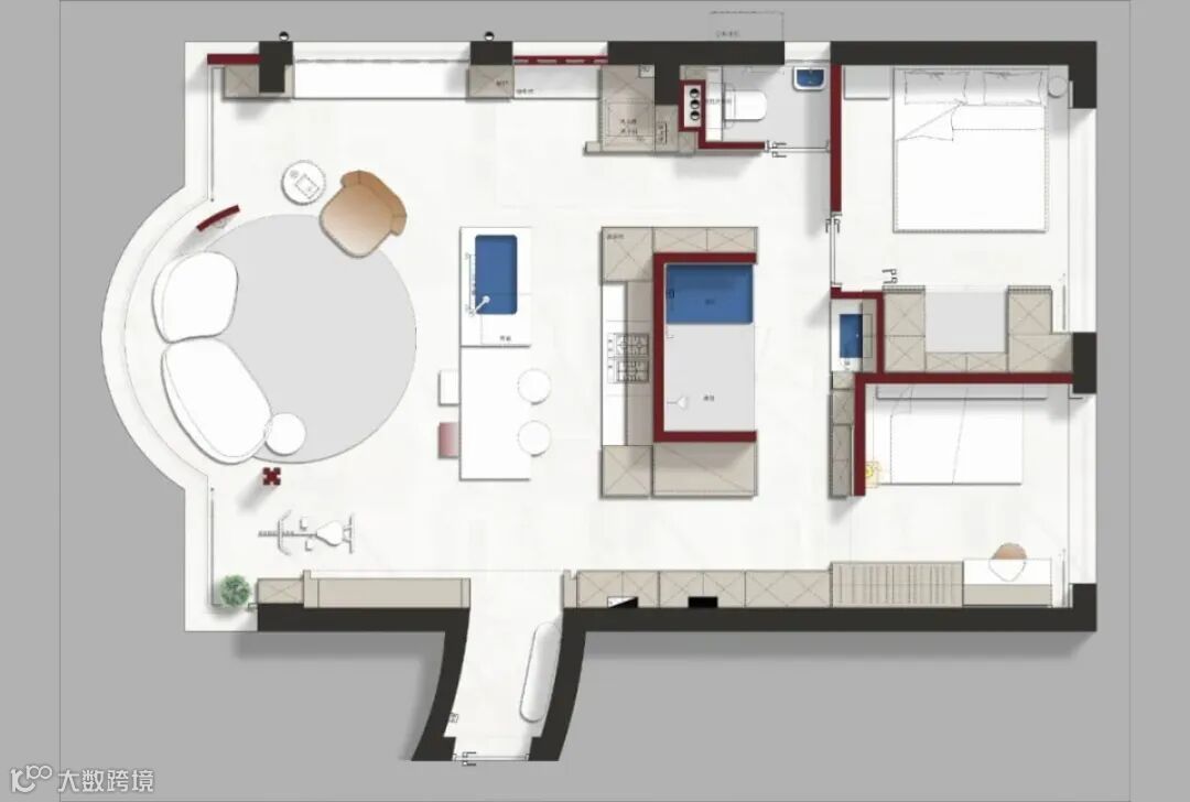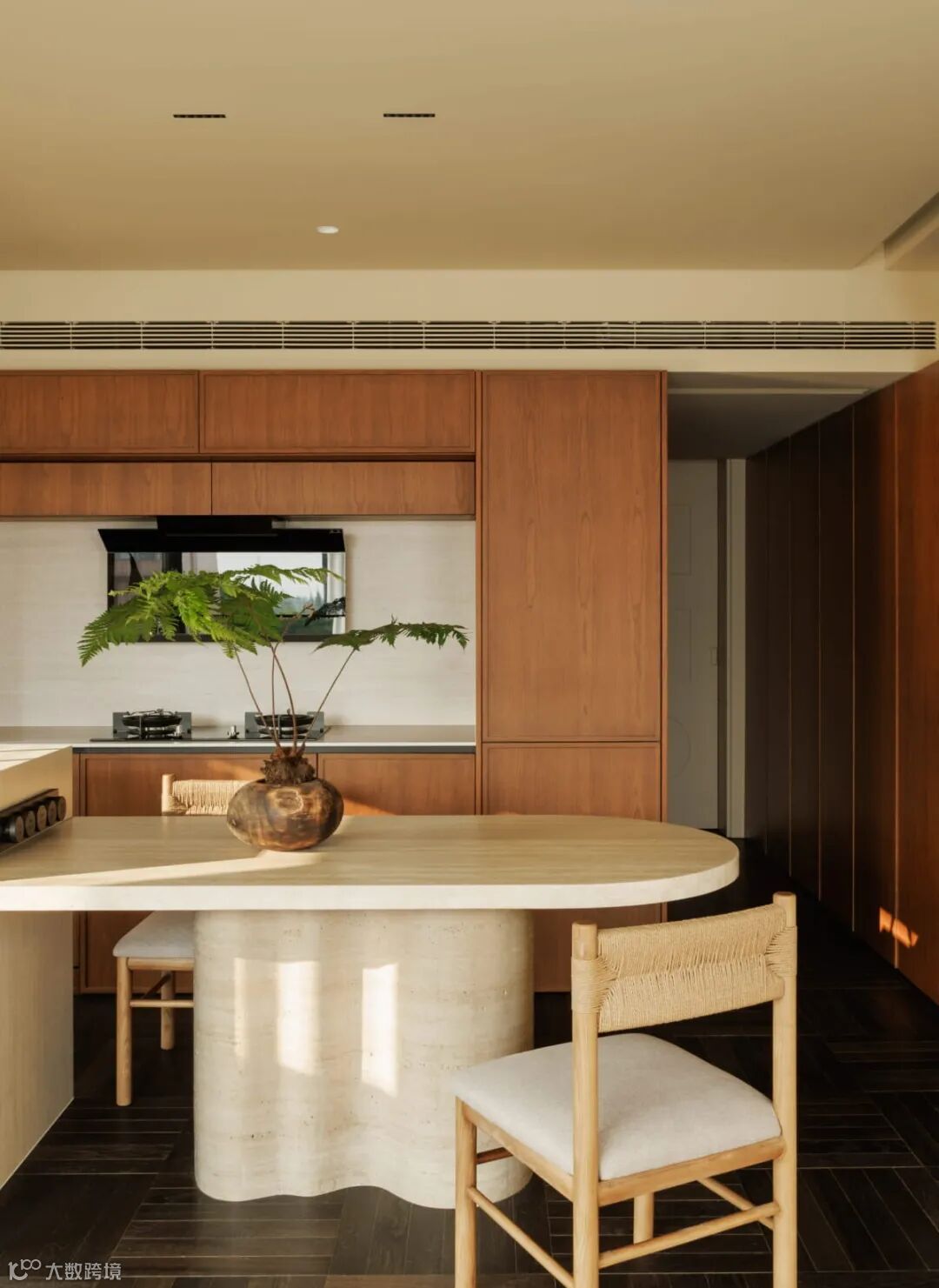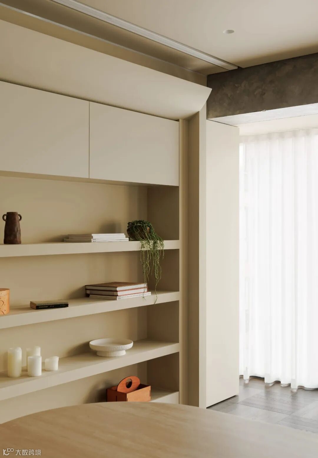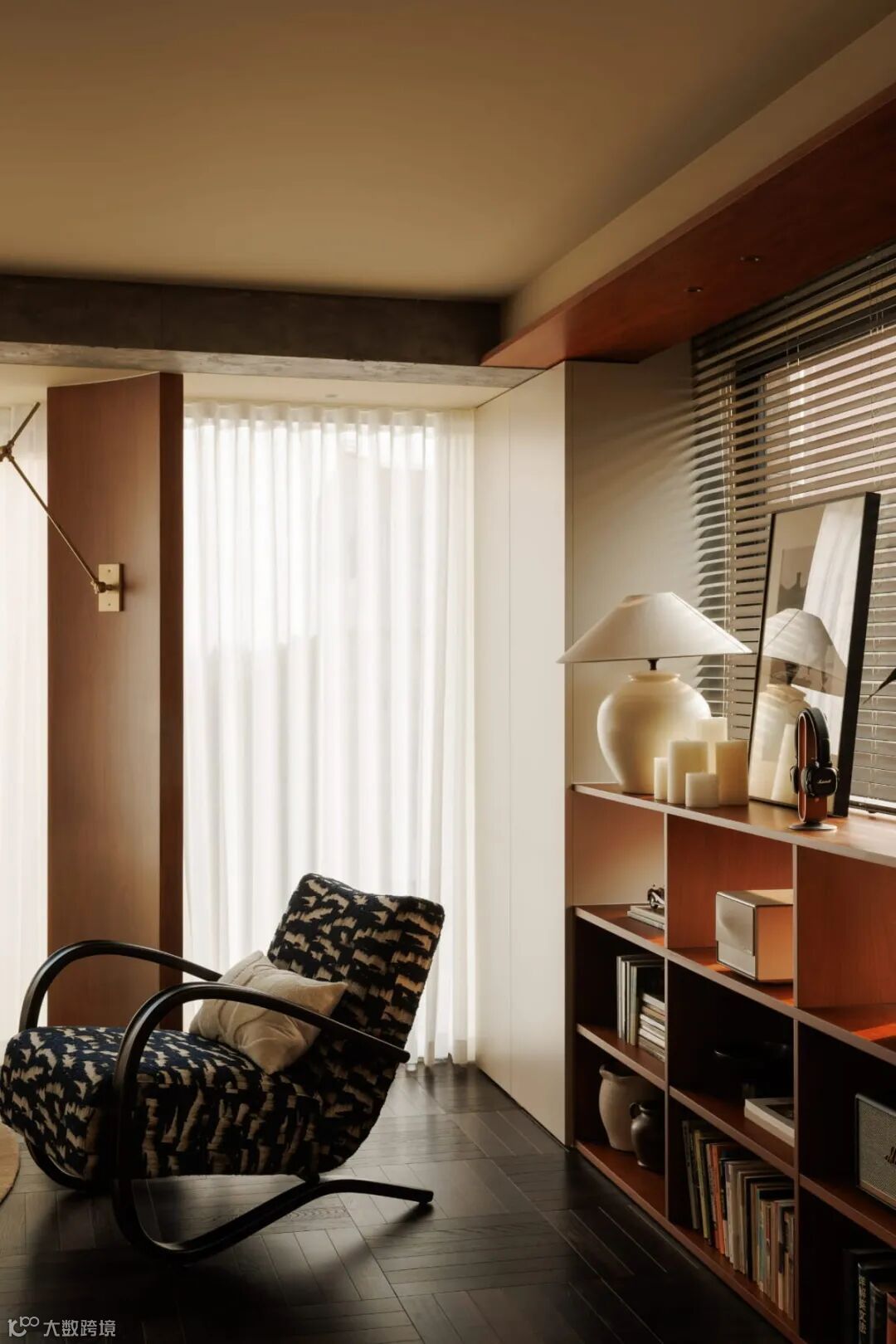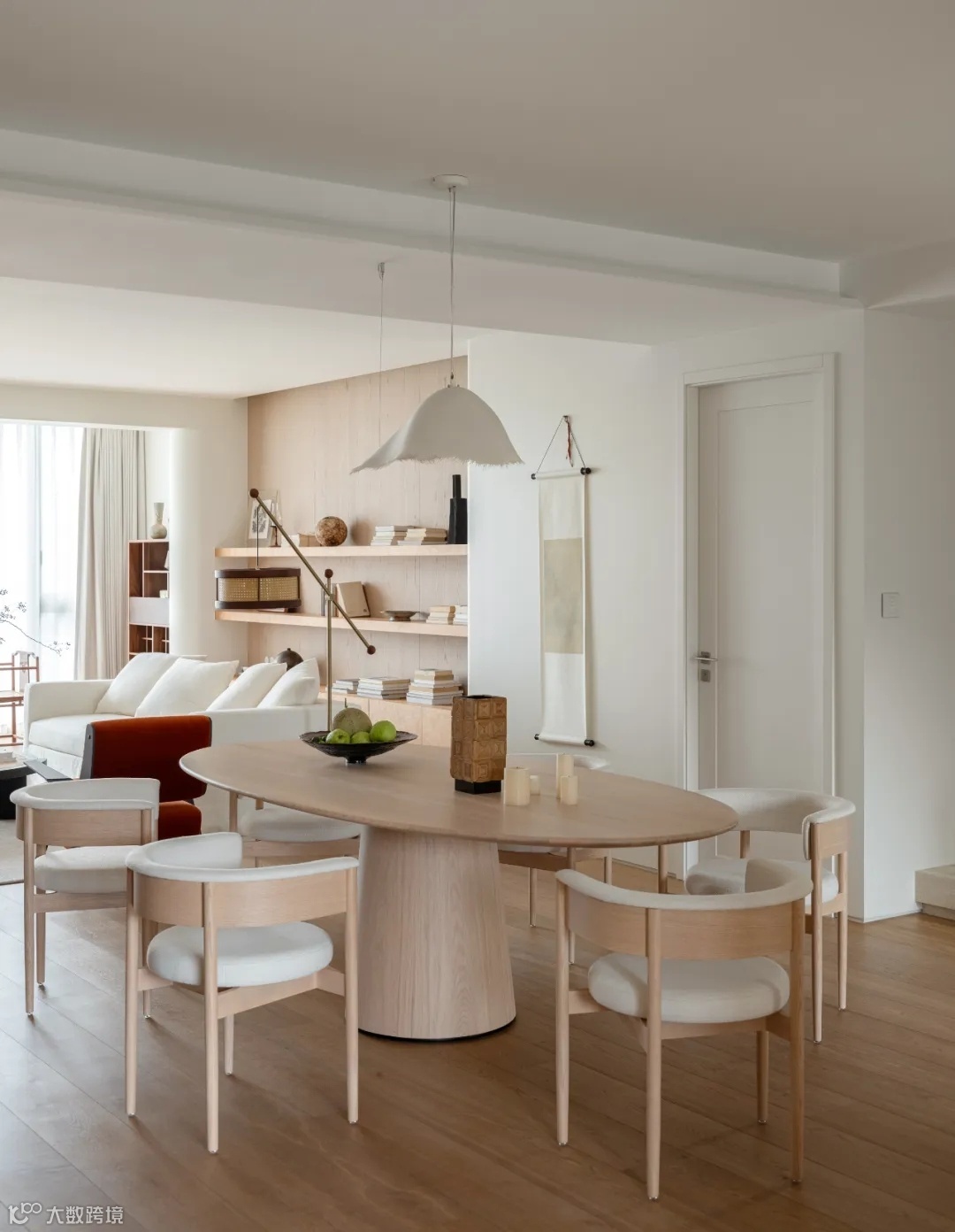 设计以空间全局为出发点,将每一寸空间转化为生活的艺术舞台。采光极佳的圆弧窗,作为客厅的焦点之一,宛如一幅动态的画作。沙发背靠这扇窗,自然与光影在这里交织,每一次光线的变化,都是一场无声的戏剧,让生活的节奏随着光影的流转而变化。