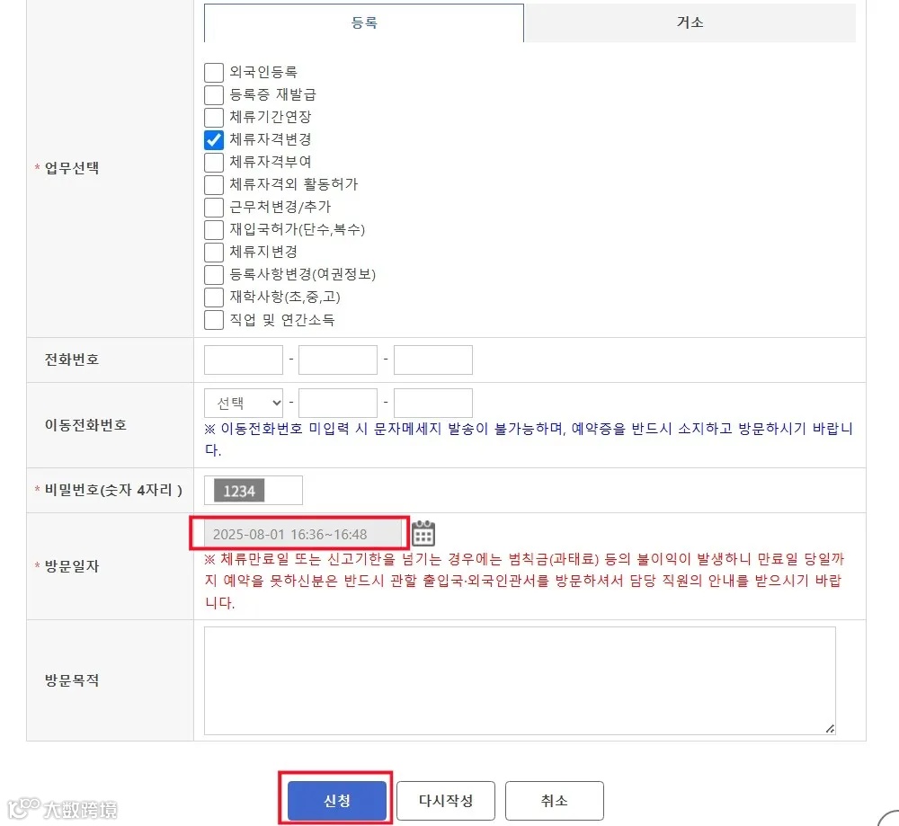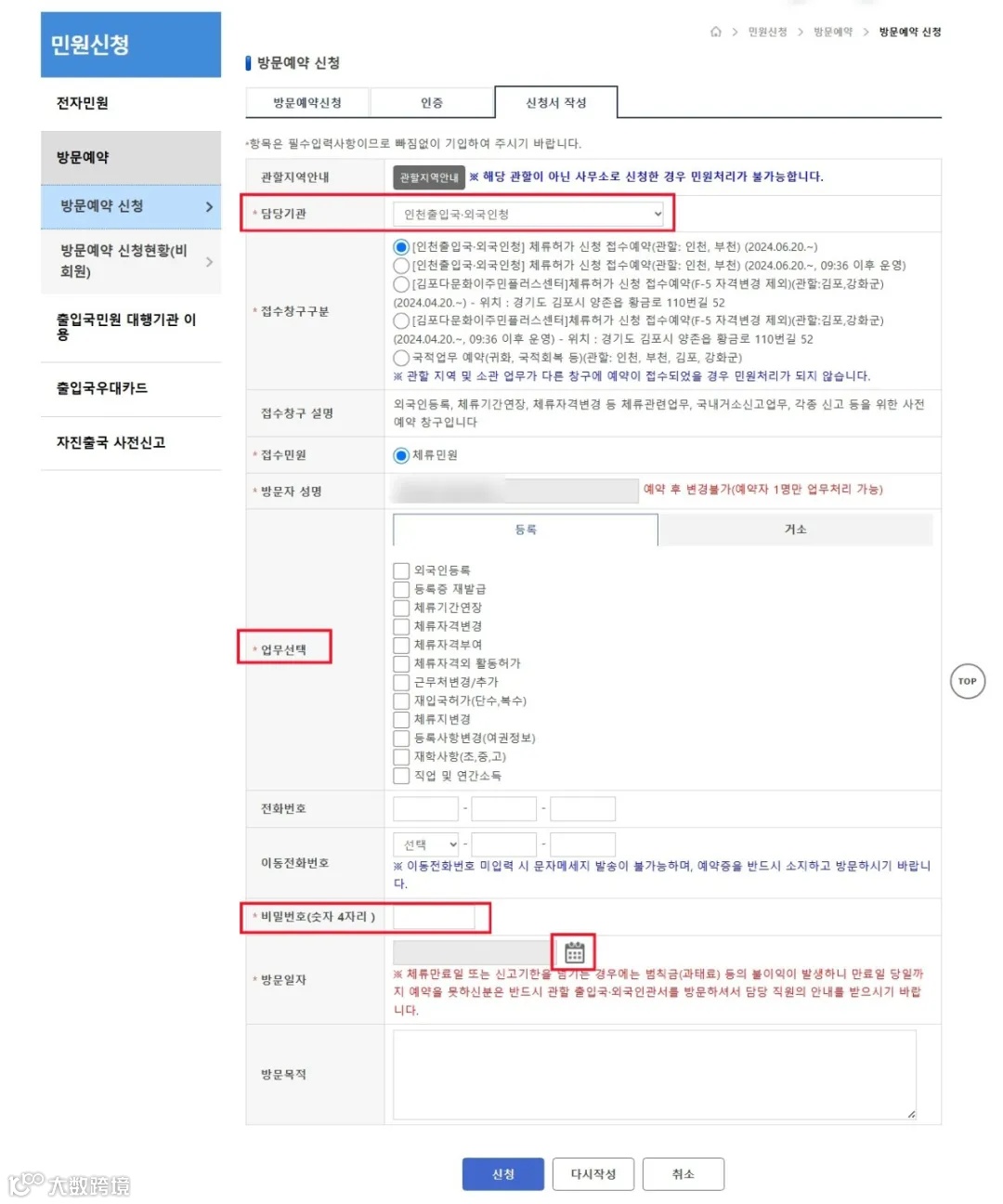 출입국 방문은 예약이 필수지만