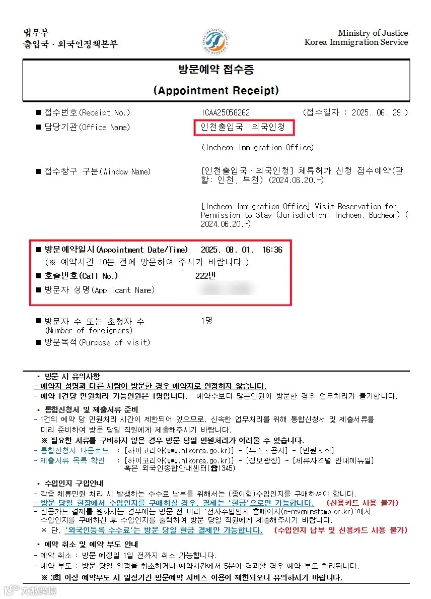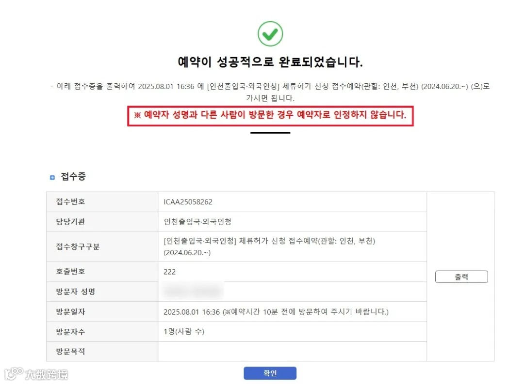 📝 예약 접수증 예시