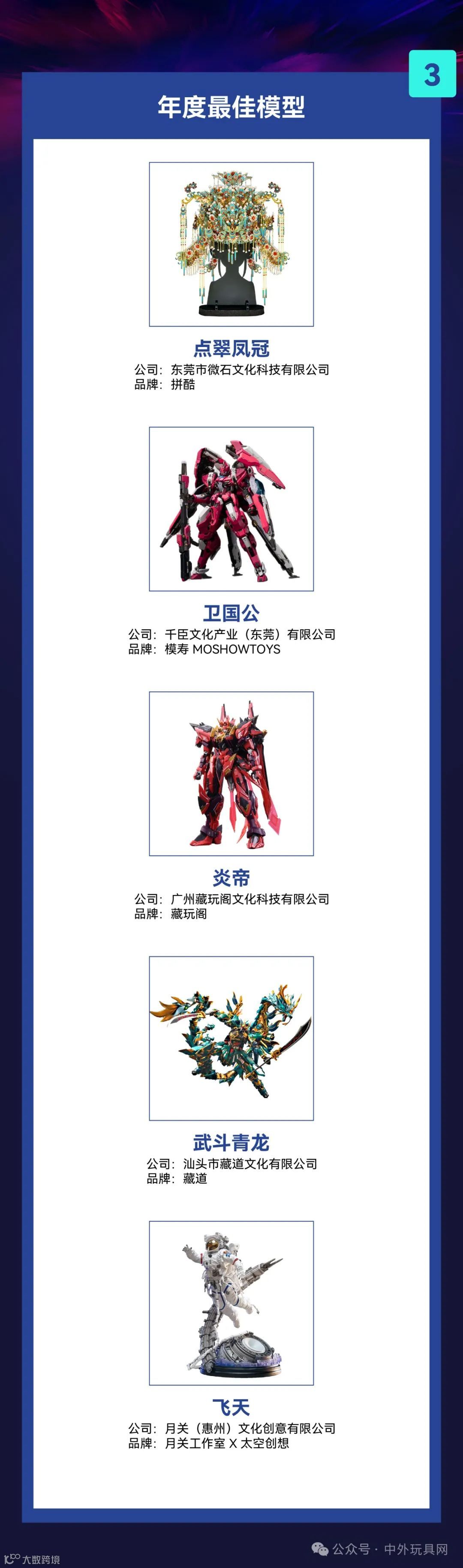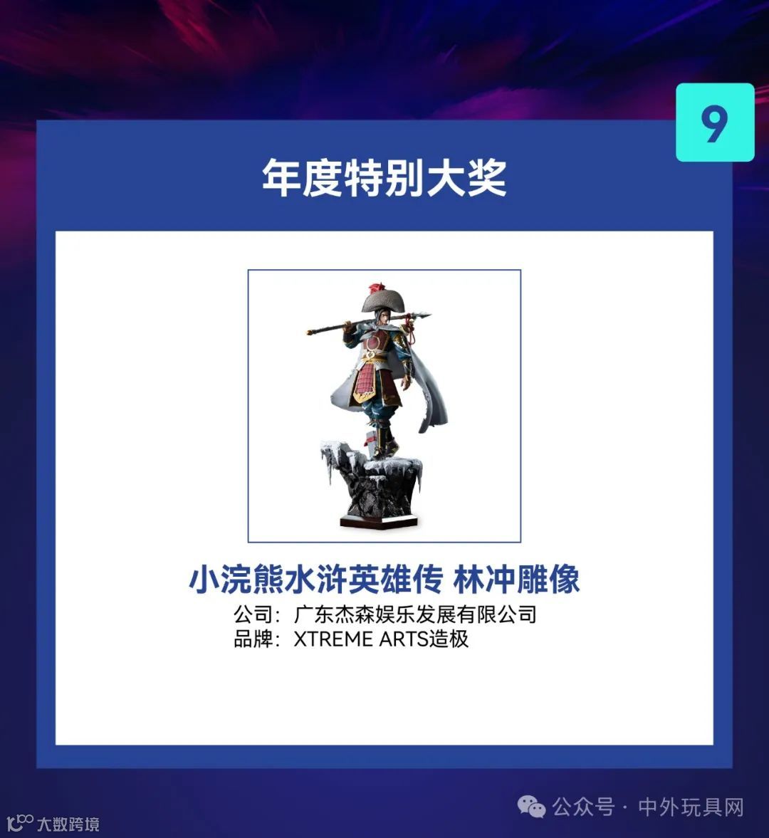 本届大奖设立9项大奖,涵盖年度最佳盲盒公仔、年度最佳手办、年度最佳模型等8个核心品类奖及年度特别大奖。自去年12月启动以来,共收到200多份申报材料,历经专家评审、媒体评审和大众评审三重评选机制,最终确定获奖名单。
