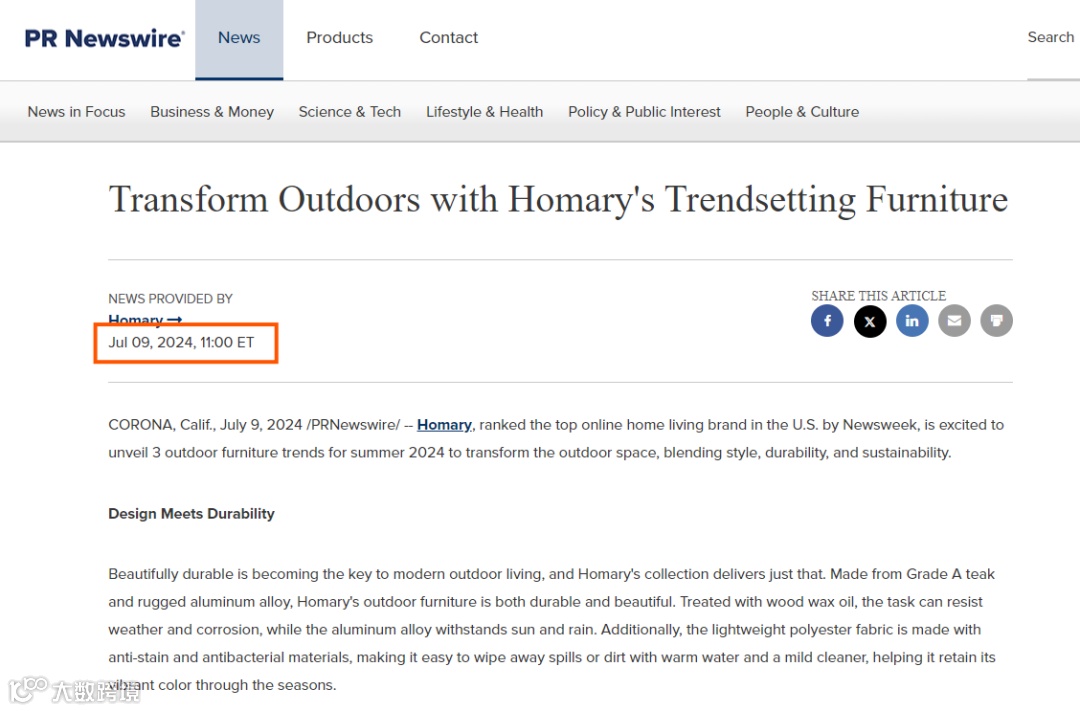 同时Homary还通过知名媒体发布促销通知类稿件,正文简短介绍品牌基本信息,下文罗列促销产品。虽然打着促销的旗号,但文章侧面有效地向读者引荐了该品牌,还重点描绘其热卖产品。一篇稿件,多重效果。