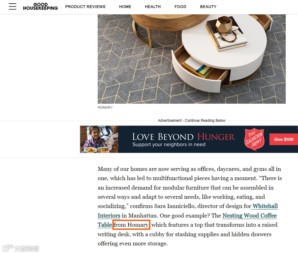 为了证明品牌的真实性,Homary联系综合性知名媒体投放稿件。以榜单推荐形式带入Homary,其他同列产品均来自知名设计师或知名品牌。由此形式,潜移默化将Homary值得信赖的形象在读者心中树立起来。