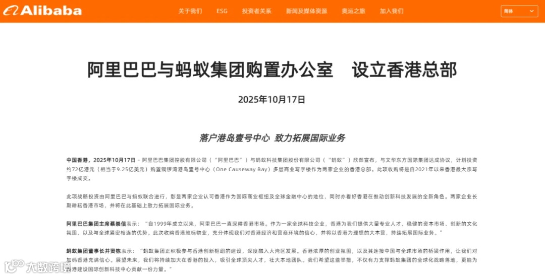 阿里&蚂蚁:72亿落子香港总部
