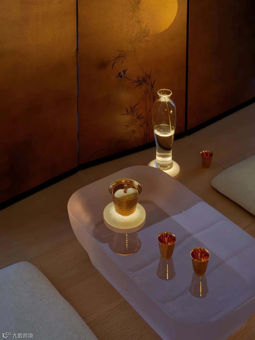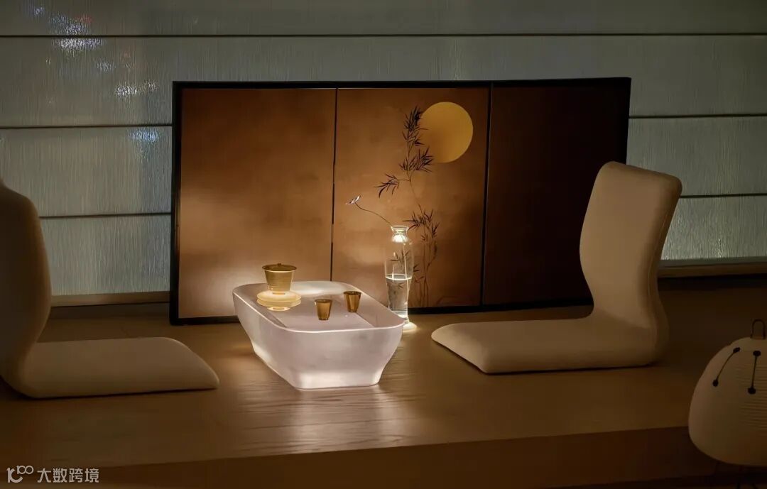摒弃诧寂风或传统东方风格的常规色彩搭配,大量采用透光玉石镶嵌墙面与门板,强化空间高端质感,精准诠释“质感东方家”的核心定位。