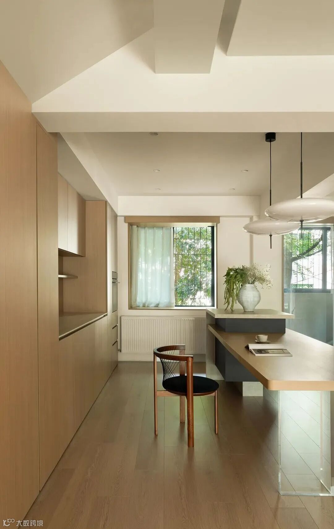 这是一套拥有20多年房龄的单位住宅改造项目,是男女业主年轻工作时居住的房子,为一跃二下叠,只对一楼进行改造,二楼为卧室静区,保留原始现状。一楼客餐厅错层结构,层高有3.3米。室内空间冬冷夏凉,因此整体空间采用原木色去进行调和室内温度给人的感受,通过造园,室内外绿植呼应,空间留白,营造自然舒适、松弛感的空间氛围,同时也关照老人居住生活的细节,打造适老化的住宅设计,让生活回归本真!