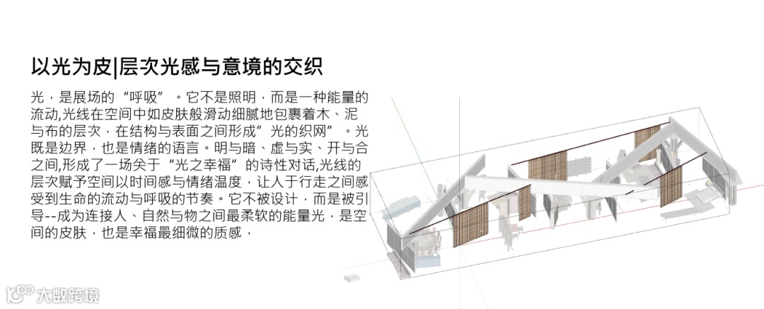 细细设计以遵循造物法则,结合个性化定制、自然与科技的融合、以及可持续设计理念,构建一个充满能量、宁静与舒适的“幸福人居样本”。在这里,空间不再只是物理的容器,而是一种与人、与自然、与文化之间的深度共振系统。每个细节与物件都承载着温度与心意,旨在提升居住者的幸福感与生活质量。“细细幸福人居展”不仅是一个居住场景的呈现,更是一种人与自然和谐共生的精神实践——一个充满生命力与心灵维度的生活场所,让幸福成为可以被感知、被体验、被细细品味的能量。