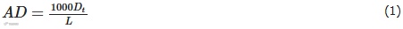 式中:AD 为延误率,s/km;L为车辆行驶距离,m;Dt 为车均延误时间,s。