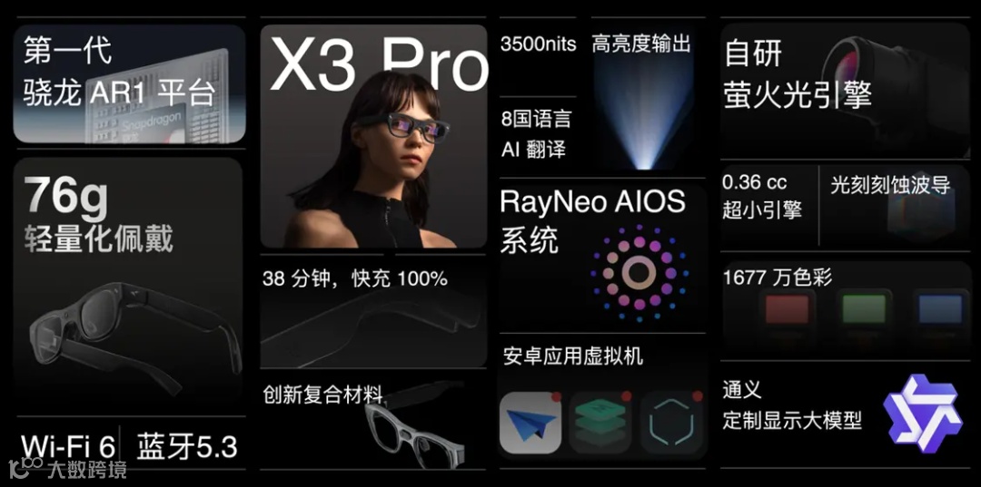 雷鸟X3 Pro在芯片、交互、空间计算、重量与光学显示五个核心技术领域实现了技术难点的突破,并引入了可视化Live AI和安卓虚拟机,应用生态更完善。