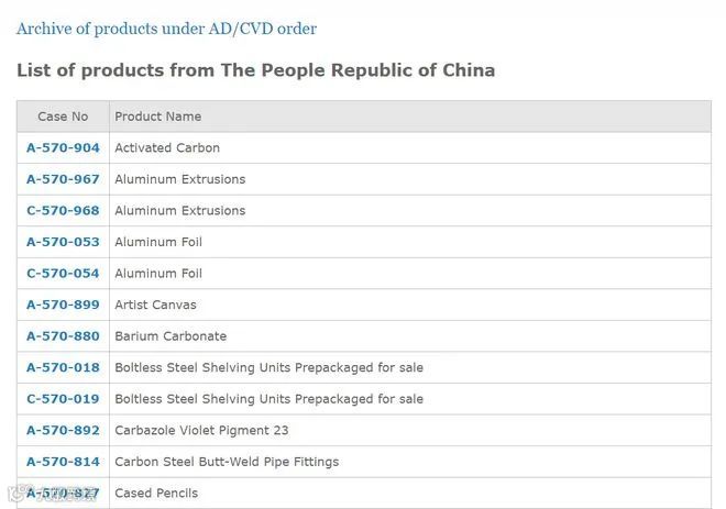其中“Case No.”为A开头的是反倾销,C开头的是反补贴