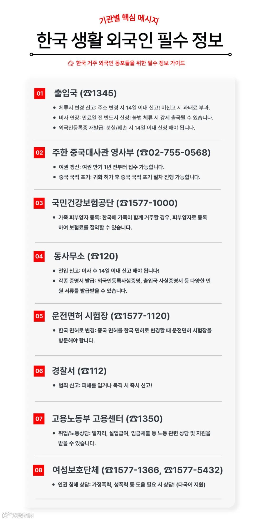 외국인등록증을 갖고 있다면“얼마나 오래 해외에있으면 등록증이 말소될까?”궁금하셨던 분들 많으시죠? 📌 등록증 ‘말소’란?외국인등록이 자동으로 취소되는 것을 의미합니다말소되면 한국에서 체류 자격이사라지며 다시 입국할 경우 처음부터새로 등록증을 신청해야 합니다 비자별 해외체류 허용 기간은?🔸 F-5 (영주권)중국 등 해외에 2년 이상체류 시 등록증 자동 말소 🔸 H-2 (방문취업비자)해외에 1년 이상 체류 시등록증 자동 말소 🔸 F-1, F-2, F-6(가족, 동반, 결혼이민)해외에 1년 이상 체류 시등록증 자동 말소 🔸 F-4 (재외동포비자)등록증 유효기간 내라면체류 기간과 상관없이언제든지 재입국 가능 말소되면 어떻게 해야 하나요?✅ 비자의 유효기간이 남아 있다면👉 기존 비자로 입국 후 출입국에서등록증을 새로 신청하면 됩니다 ✅ 비자 유효기간이 이미 지났다면👉 먼저 해외 소재 한국 영사관을 통해 비자를 다시 신청해야 하며 입국후 등록증을 새로 발급받아야 합니다 장기간 해외 체류 계획이 있다면말소 기준 전에 한국에 입국하거나사전에 말소 여부를 확인하는 것이 좋습니다특히 영주권(F-5)처럼 말소되면 회복이까다로운 경우 주의가 필요합니다