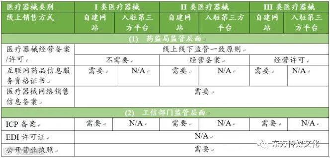 根据《医疗器械经营监督管理办法(2017修订)》第4条、第21条等相关规定,医疗器械经营活动监管包括在经营全过程的采购、收货验收、贮存、销售、运输、售后服务等各个板块,要求以风险管理为中心,经营企业依法取得经营许可备案,并通过在购销中索票验证、建立并执行进货查验记录和销售记录制度,来确保医疗器械“来源可查,去向可追,责任可究”。基于不同类别医疗器械的风险程度,不同线下销售模式对应的经营资质有所不同: