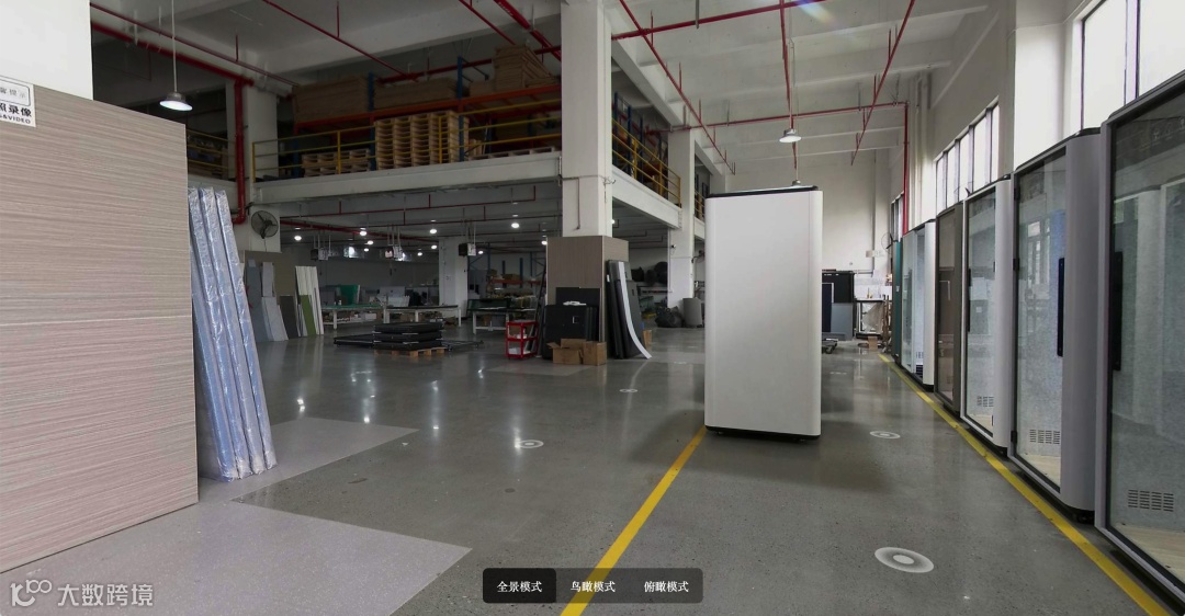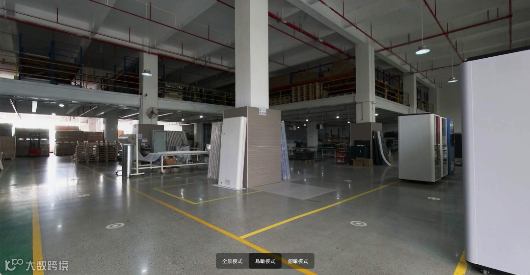 实景VR还原工厂线下的车间、试装台、仓储等多元化呈现企业实力和商品细节,让买家在异地能身临其境看样逛厂,不见面也能谈单!