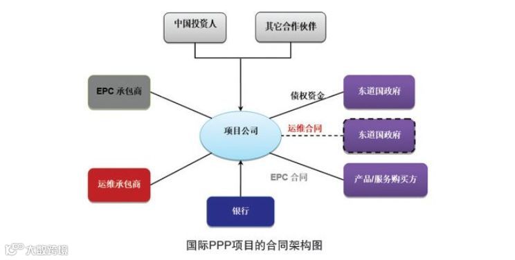 从合同架构图中可以看出,项目公司处于整个架构的核心,将与各个主体签订不同的合同。项目公司可能会在特许经营协议项下与政府方发生争议,也可能会在EPC合同或运维合同项下与EPC承包商或运维承包商发生争议。
