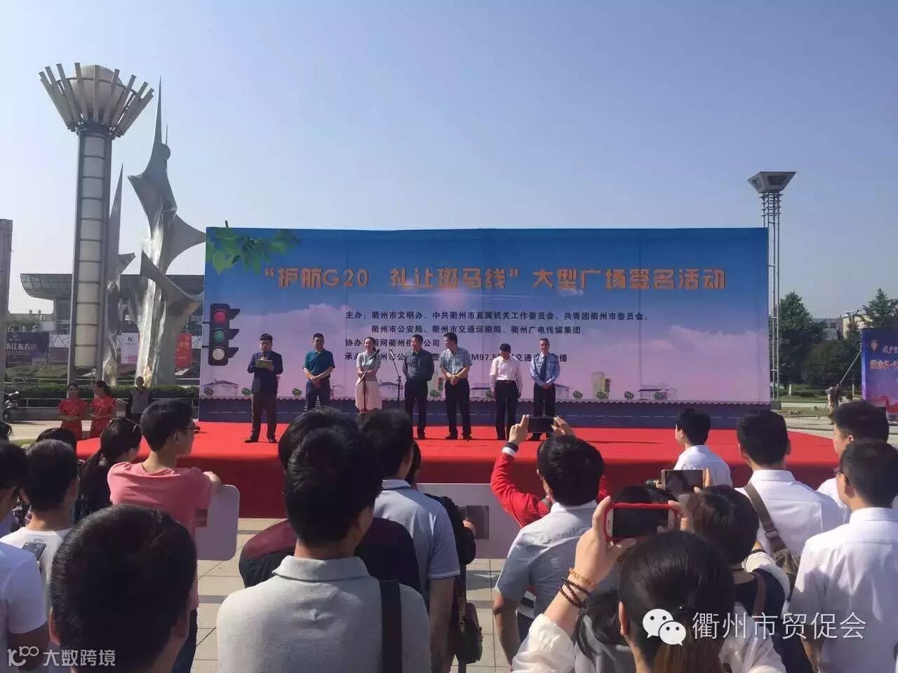 5月12日上午,为迎接G20峰会,推进“文明礼让斑马线”,结合我市创建文明城市,“护航G20礼让斑马线”大型广场签名活动启动仪式在我市南湖广场举行,来自全市的党员代表、团员志愿者、交警以及出租车司机代表和公交车司机代表共计200余人参与此次活动。
