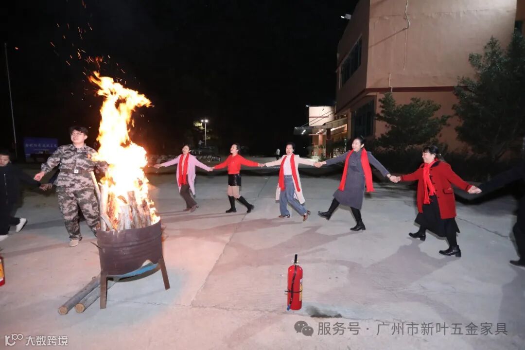 夜幕低垂,星辰点点。随后根据庆典流程,在主持人的安排下,大家又转移到篝火聚焦场所,一场温馨的篝火交流在培训基地的林间空地悄然拉开。篝火熊熊燃起,空气中弥漫着木柴燃烧的香气,火光跳跃,映照着盛会每一张兴奋而又温暖的脸庞。大家以篝火为中心围成一个大圈,家人们手挽手,心连心,围绕篝火,随着欢快的音乐节拍,跳起了欢快的步伐,欢声笑语起伏跌宕。