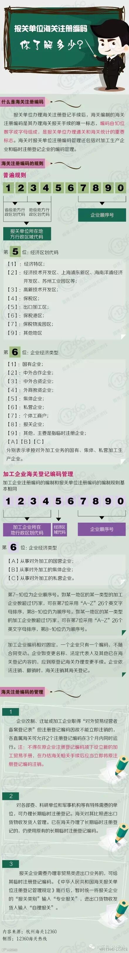 接触海关业务的人都知道海关注册编码是由十位数字或字母组成的,但是分别代表什么意思,想必大家就没那么清楚了吧。没关系,海关知识小课堂今天又开课了,一起来跟杭州海关12360的小编学习一下吧~