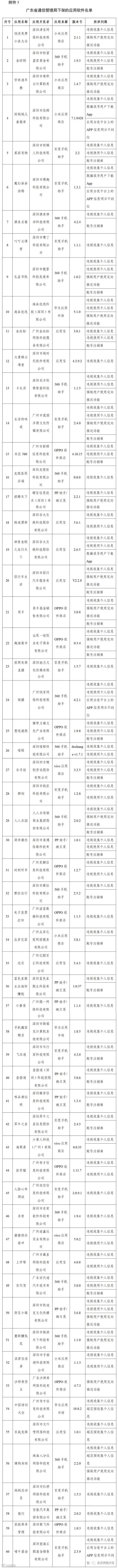 附件5.广东省通信管理局下架的应用软件名单