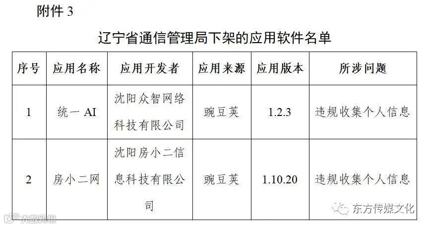 附件3.辽宁省通信管理局下架的应用软件名单