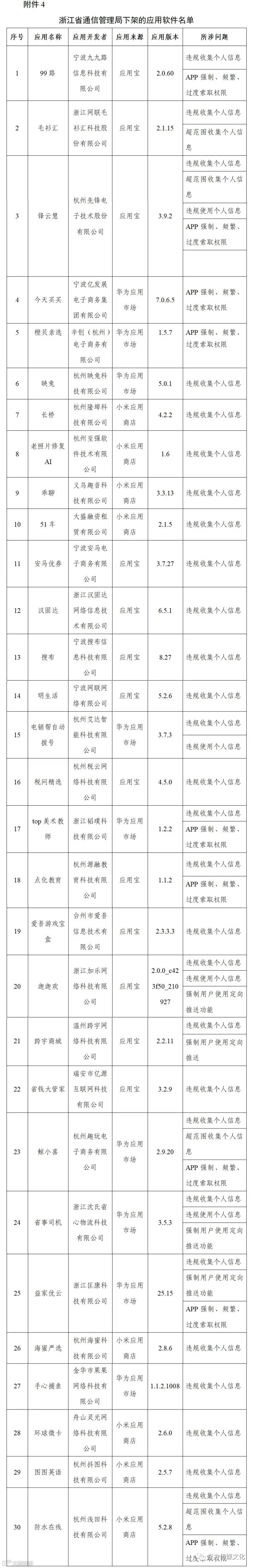 附件4.浙江省通信管理局下架的应用软件名单