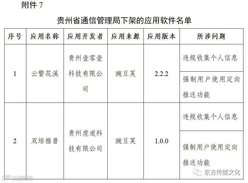 附件7.贵州省通信管理局下架的应用软件名单